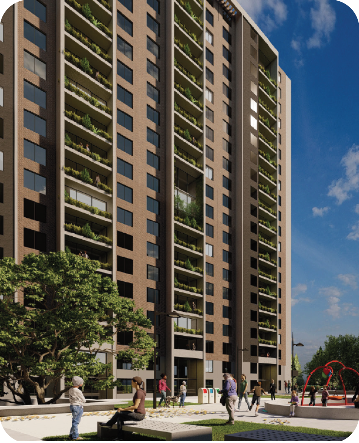 - Primera fase: una torre de 20 pisos (185 apartamentos)
